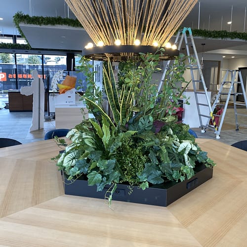 質感・色合い・ボリュームすべてにこだわった高精度のフェイクグリーン。店舗や商談スペースでも“本物と見間違える”とご好評いただいています。