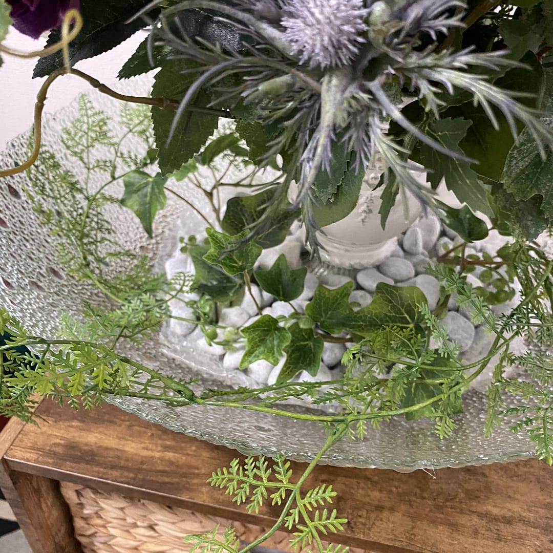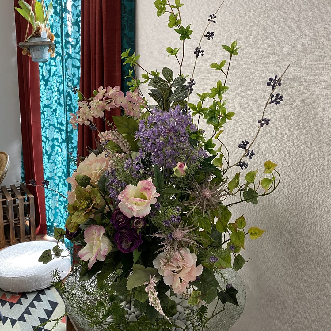 既存の造花アレンジメントが古くなったので入れ替えたいとのことでした。