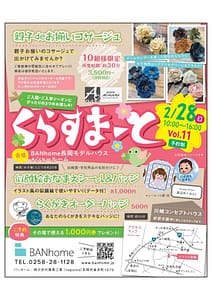「くらすまーとvol.11」 この度、新潟の注文住宅・デザイン住宅を手掛けるBANhome(長岡オフィス)様よりご依頼を受けまして、BANhome様で定期開催されている交流イベント「くらすまーと」にてコサージュのオーダー […]