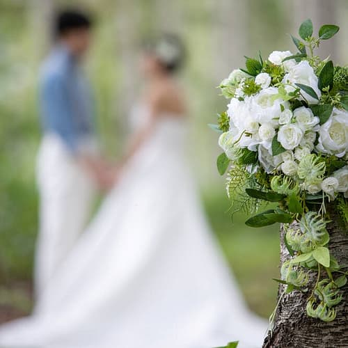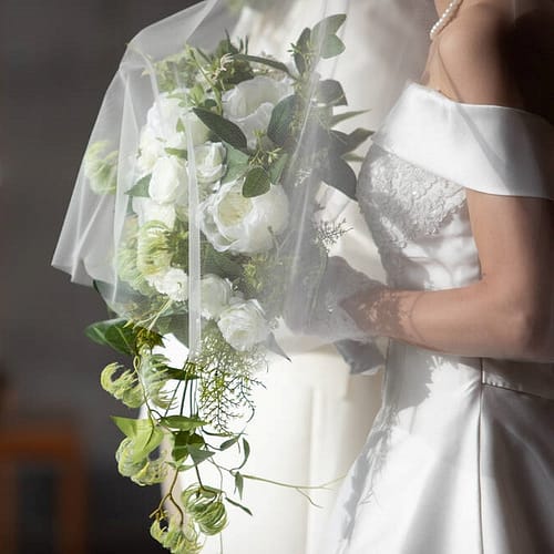 屋外などでアクティブな動きを入れた記念動画撮影をされる場合にも安心して使用することができます。屋外ではお花の温度管理が難しいため造花ブーケが大変便利です。