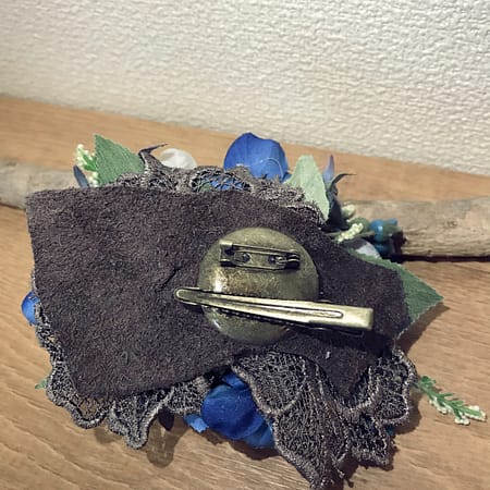 AOHANAのコサージュ系の金具は「ダブルピン(クリップ&安全ピン)」を使っています。