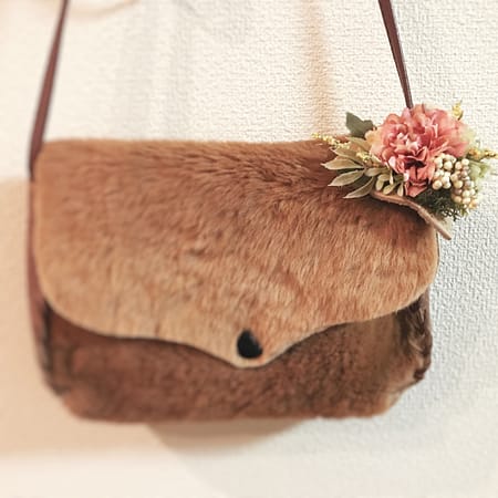 私が製作しているときの頭の中は、胸元に着けるコサージュとしてのイメージももちろんありますが、鞄に着けてみたり、帽子に着けてみたりしたときにどうみえるか。どんな雰囲気のアイテムに似合うか、という事の方のイメージが強い気がしています。