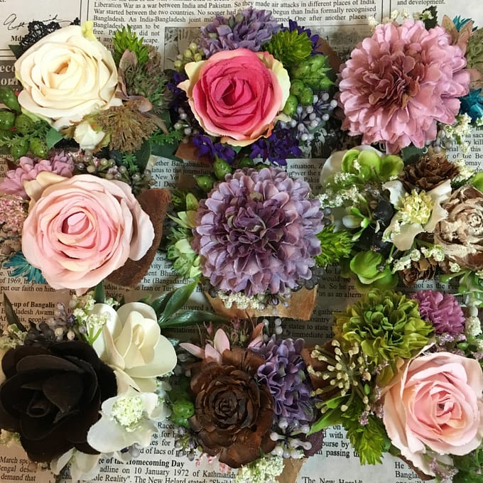 造花・ドライフラワーなど様々な花材や素材を組み合わせたアレンジ・コサージュ・ウェディングアイテムなど製作しております。