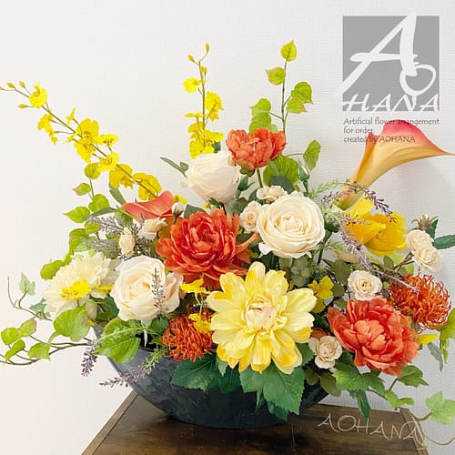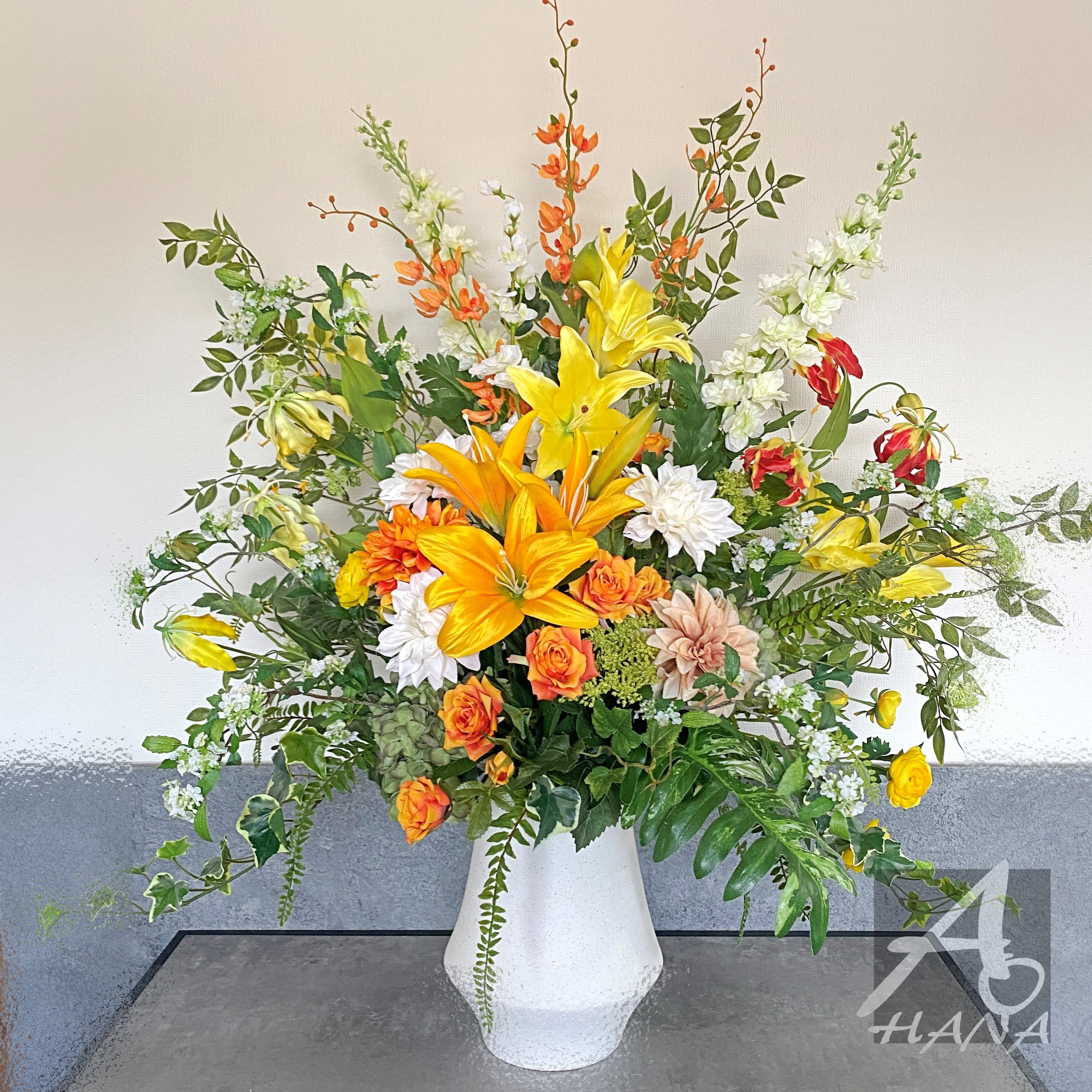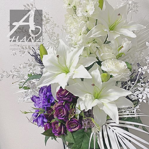故人を偲ぶためのお供えや、お悔みの意を表すアレンジメント。
