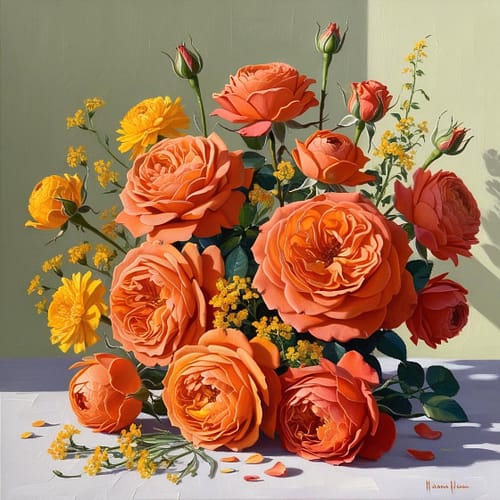 - メインカラーとサブカラーのお花の他にグリーンが入ります。
